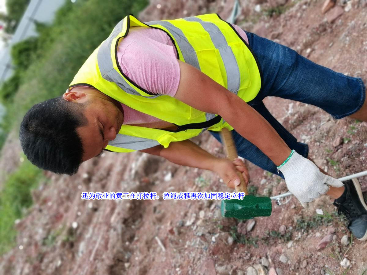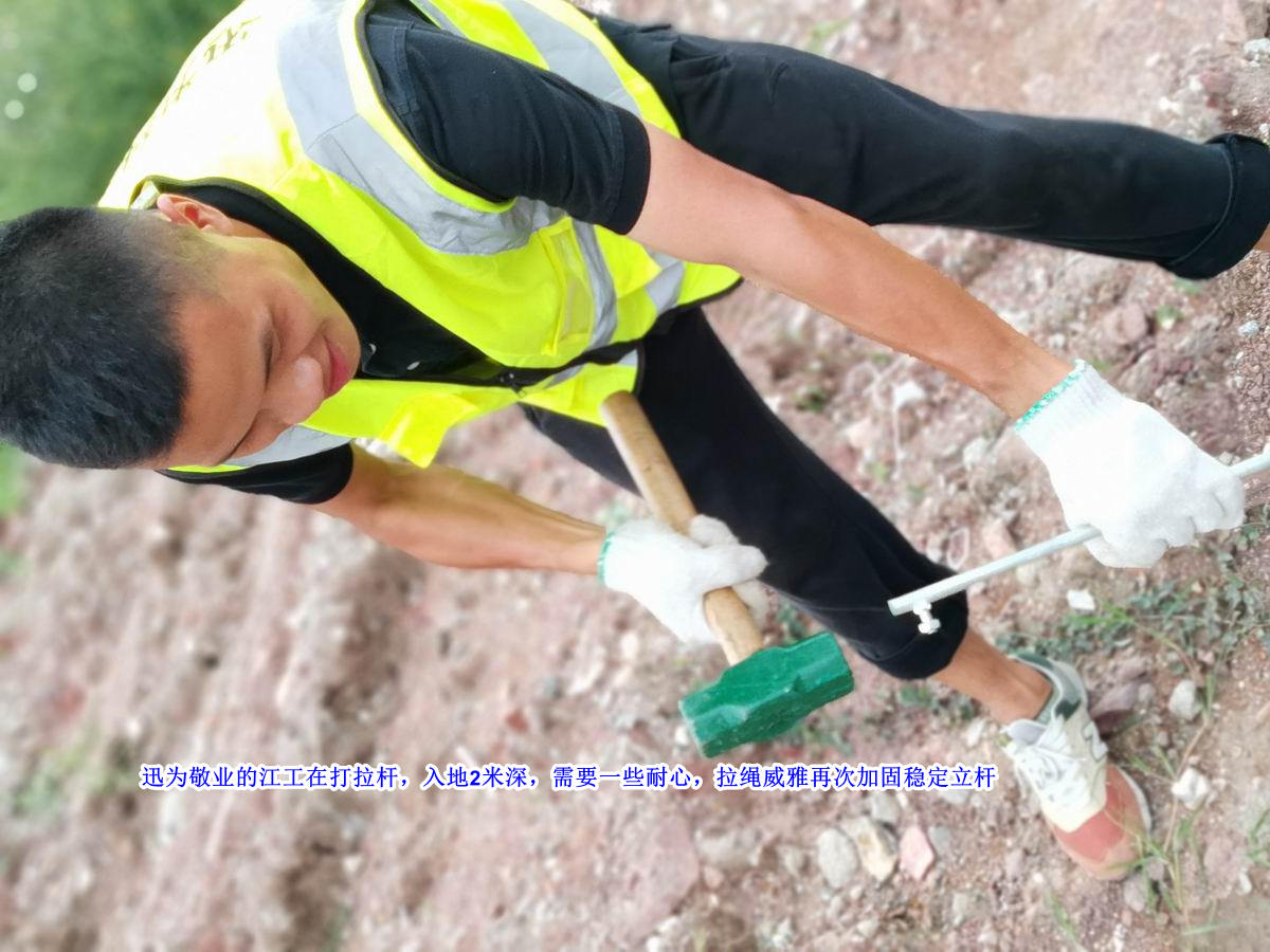 迅為江工在打拉桿,入地2米,穩(wěn)保立桿穩(wěn)固