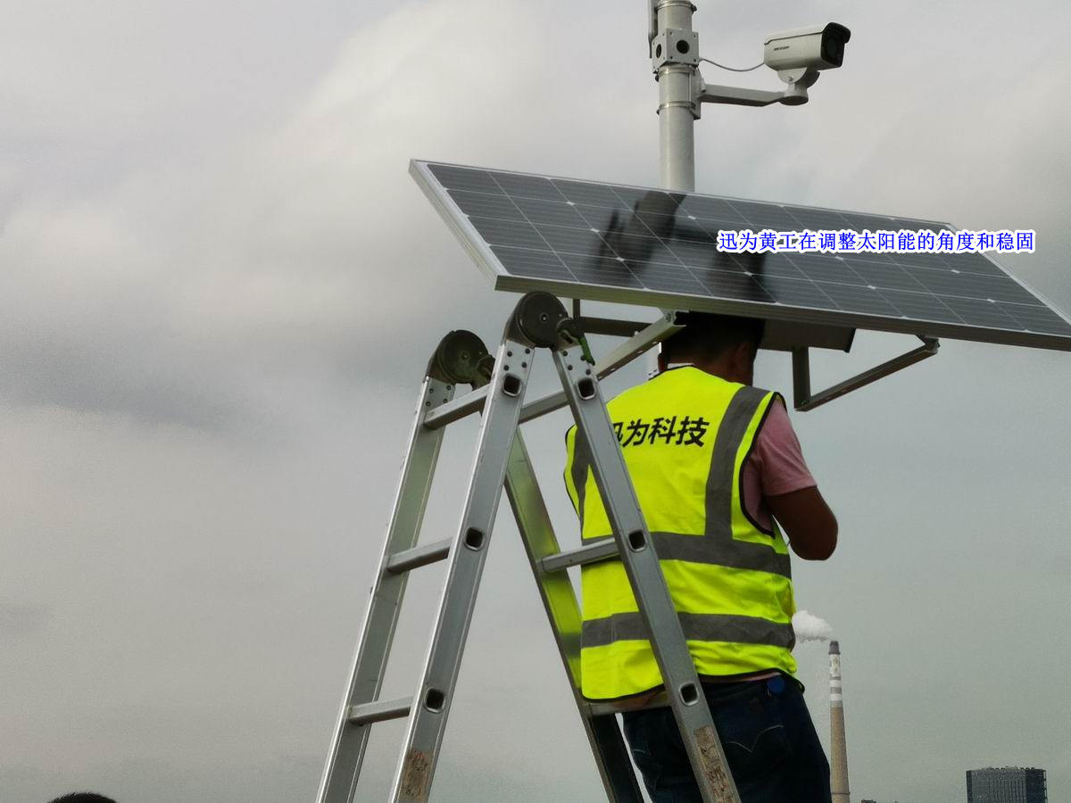 迅為黃工和江工在調整太陽能板的角度,加固螺絲。
