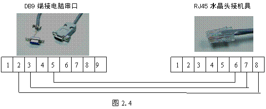 電腦一般有兩個(gè)RS-232串口,用隨機(jī)附帶的RS-232連線可直接與機(jī)具連接,如圖2.2所示。也可以按下列方法制作:
