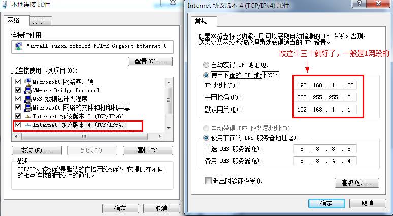 2.把電腦網(wǎng)段改成和ipc的一樣