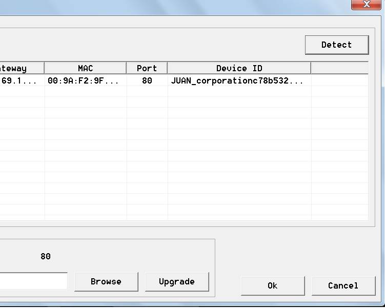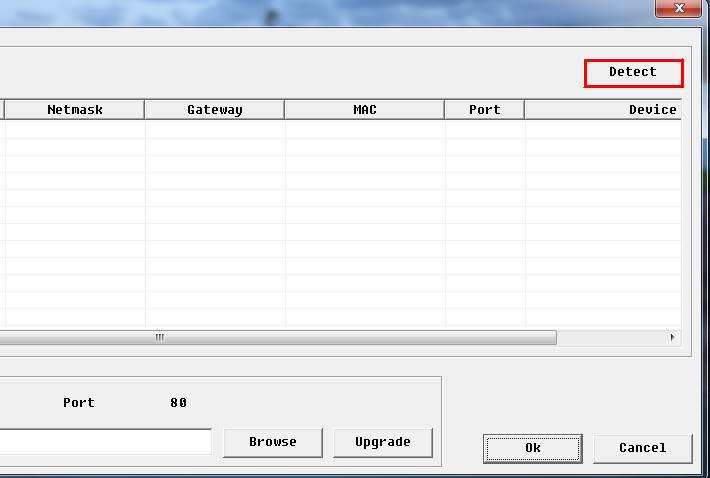 3.點(diǎn)擊搜索按鈕“Detect”后在列表里面會(huì)顯示當(dāng)前所有IP攝像機(jī)