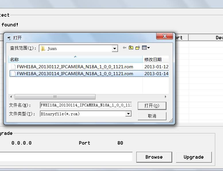 4.在列表里鼠標(biāo)左擊選中你需要升級(jí)的IP攝像機(jī)