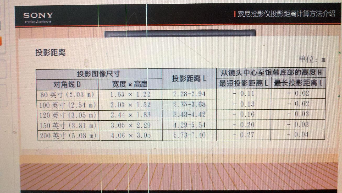 已知畫(huà)面尺寸得到投射距離: