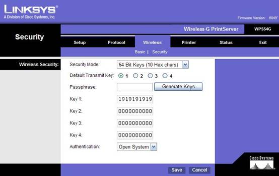 1-5:如果是加密網(wǎng)絡(luò) 請(qǐng)看下圖:點(diǎn)Security 例如:為 WEP 64bit加密模式:在KEY1 輸入對(duì)應(yīng)的密碼就可以了。記得點(diǎn)SAVE 保存。