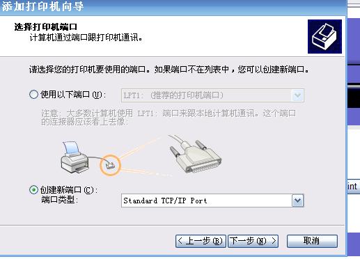2-3:選擇 創(chuàng)建新端口 然后在旁邊的下拉菜單選擇 standarf tcp/ip port 點(diǎn)下一步