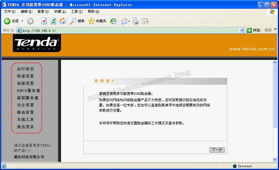 驗(yàn)證成功后 就進(jìn)入騰達(dá)的設(shè)置頁面 按下一步就可以進(jìn)行設(shè)置了