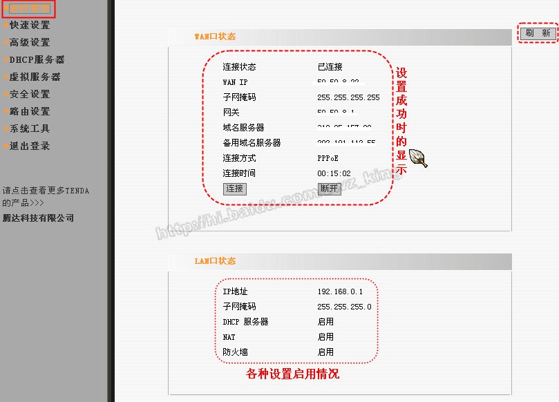 設(shè)置成功后重啟下路由(系統(tǒng)工具里的那個(gè)) 去看看 運(yùn)行狀態(tài) 如果設(shè)置成功 會顯示出非0的數(shù)據(jù)