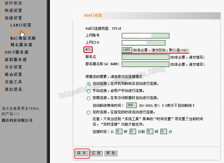 WAN口設(shè)置 一般不用設(shè)置 如果發(fā)現(xiàn)只能QQ不能上網(wǎng) 可以考慮改下 MTU值