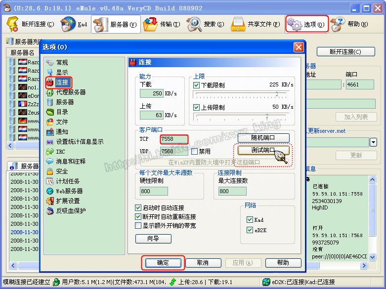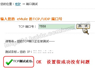 好了現(xiàn)在打開EMULE測試一下成果 客戶端口->測試端口