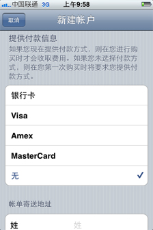⑥:這一步最關(guān)鍵。如下圖14,在信用卡選項(xiàng)中,選擇 [無(wú)]。其它選項(xiàng)可以隨便亂填了,只需注意一下郵編選項(xiàng)要填6位數(shù),填完后點(diǎn)擊下一步;