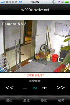3、點(diǎn)擊通道號(hào),進(jìn)入監(jiān)控界面,界面功能按鍵介紹如下: