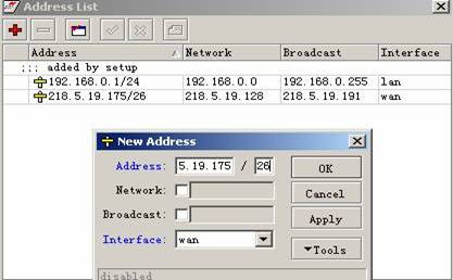 7選IP ---address 點+號添加一個Ip,子網(wǎng)掩碼用10進(jìn)制,比如255.255.255.252就是30 (30個1),接口選wan