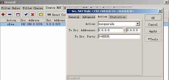 在Action 中 選 masquerade ,意思是IP偽裝。