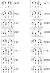 2、地址碼的設(shè)置:此系統(tǒng)最多可以16個控制器聯(lián)網(wǎng),出廠時所有的控制器都為1號門。為了在同一網(wǎng)絡(luò)內(nèi)識別不同的門號,安裝時必須將主板上的SW1拔動開關(guān)拔到不同的位置: