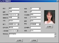 按“新增”即可在如下的對話框中輸入人員資料,確認(rèn)無誤后按“保存”;如果有員工的相片,可按“相片”按鈕,選擇正確的路徑導(dǎo)入位圖格式的相片:
