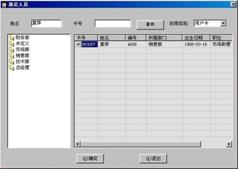 在人事資料對話框的上方,可輸入查找條件進行人員的模糊查找,如果不輸入任何內(nèi)容直接按“查找”,可顯示所有人員的資料。