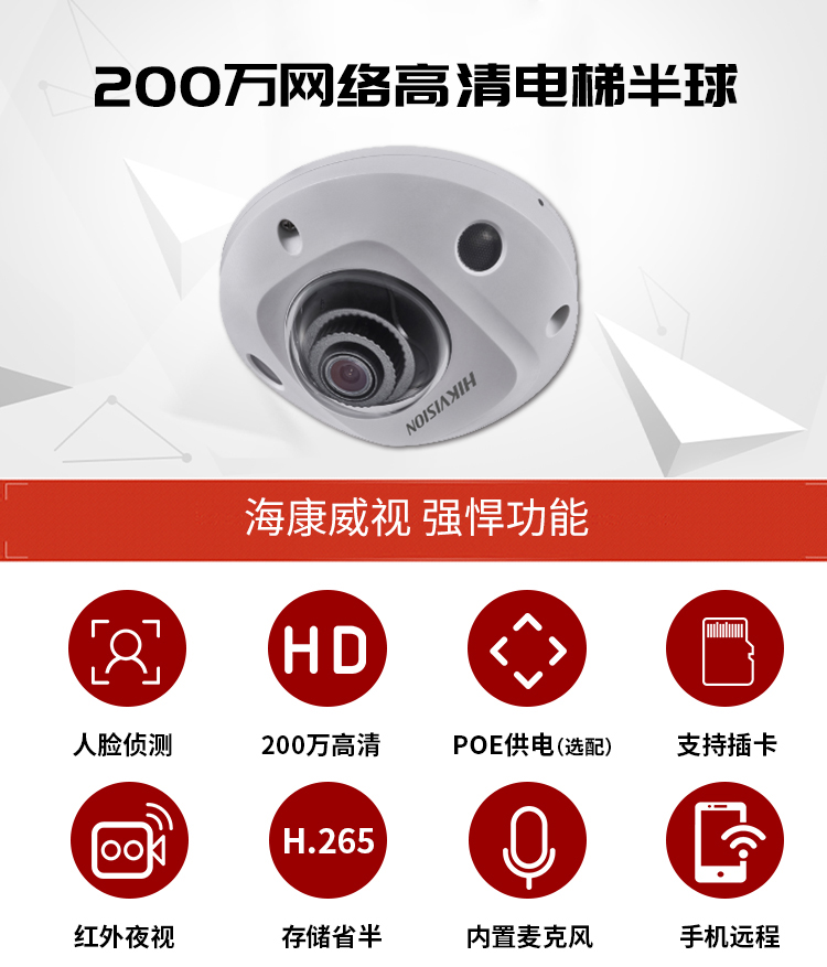 購買咨詢??低暎℉IKVISION) 200萬紅外電梯專用半球,內(nèi)置錄音拾音器,高清網(wǎng)絡(luò)廣角監(jiān)控?cái)z像頭, POE供電 DS-2CD3525FV2-I(POE)2.8mm